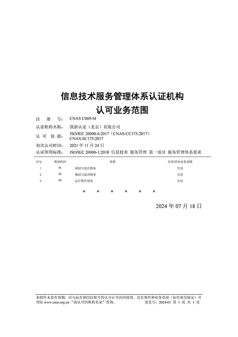 CNAS認(rèn)可ITSMS范圍