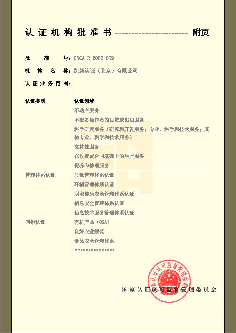 認(rèn)證機(jī)構(gòu)批準(zhǔn)書(shū)