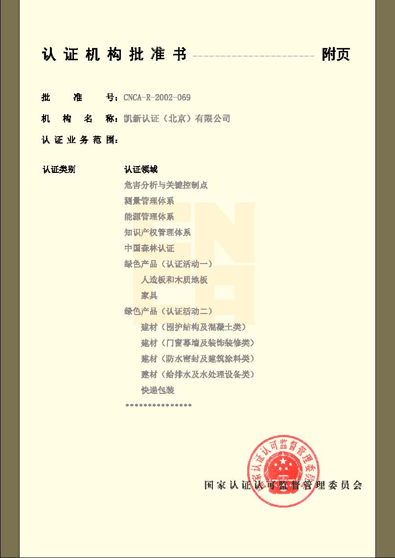 認(rèn)證機(jī)構(gòu)批準(zhǔn)書(shū)